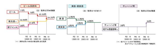 現時点では1000Lあたりの酒税がビールは18.1万円に対して日本酒やワインが10万円、チューハイ類にいたっては8万円です...